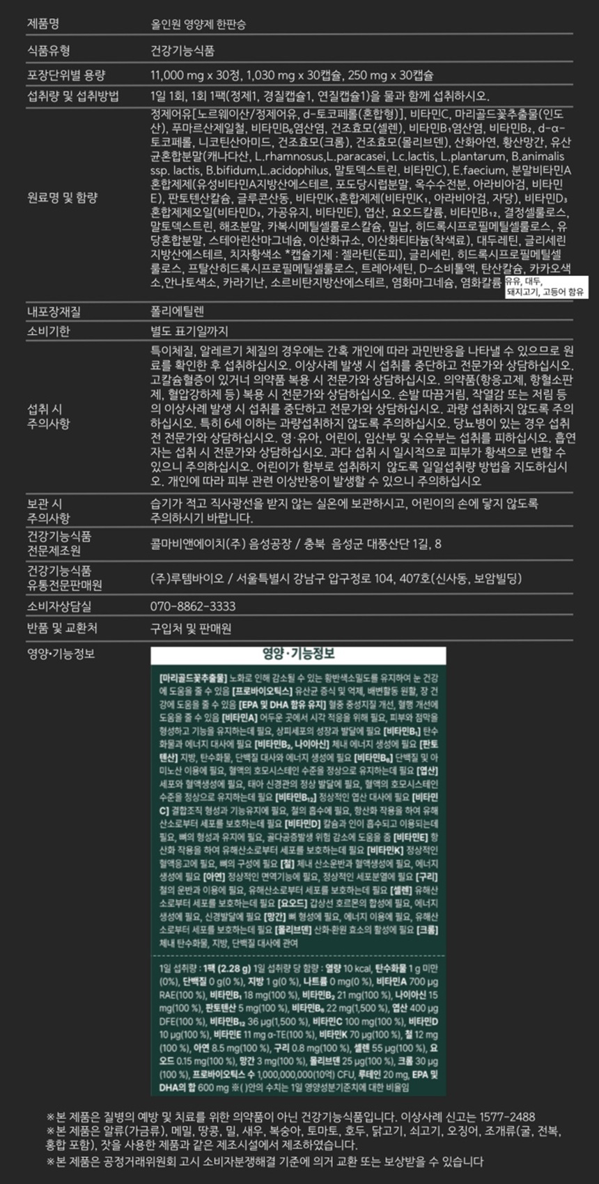 닥터루템 남진 올인원 영양제 한판승 30회분, 1박스