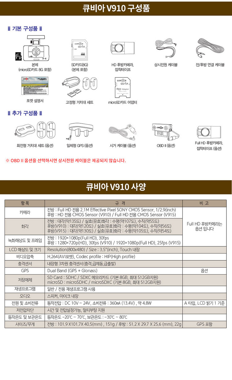 LUCAS 루카스 V910 8GB+8GB 2채널 블랙박스