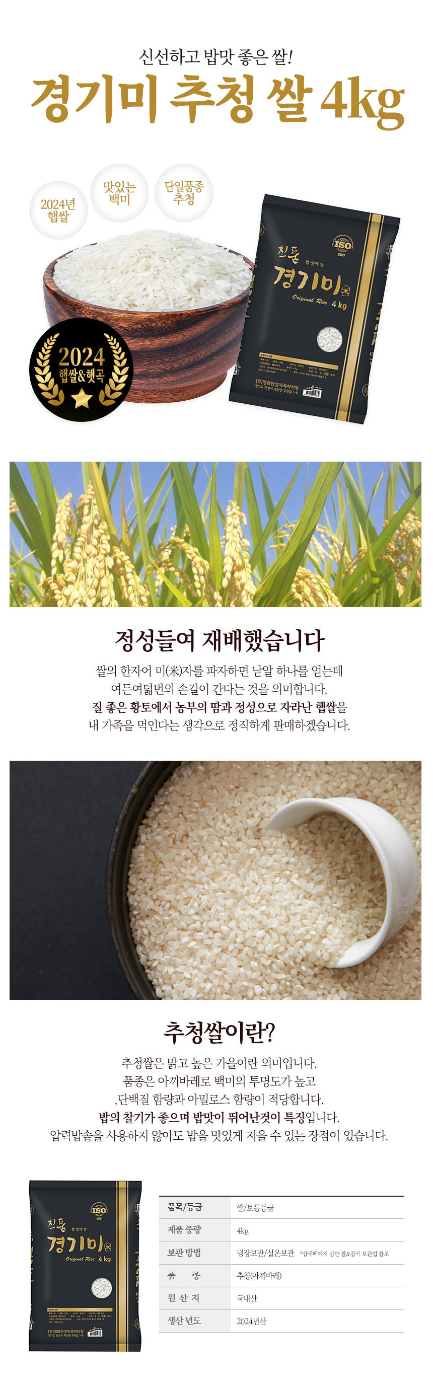 [2024년햅쌀] 국내산 경기미 추청 쌀 4kg