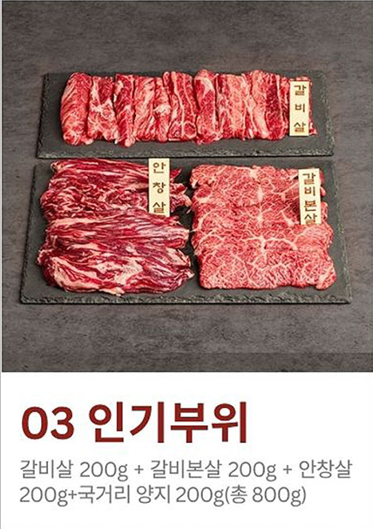 [정립한우][인기부위] 안창살 포함 갈비살 4종 황금조합 세트 800g 선물세트