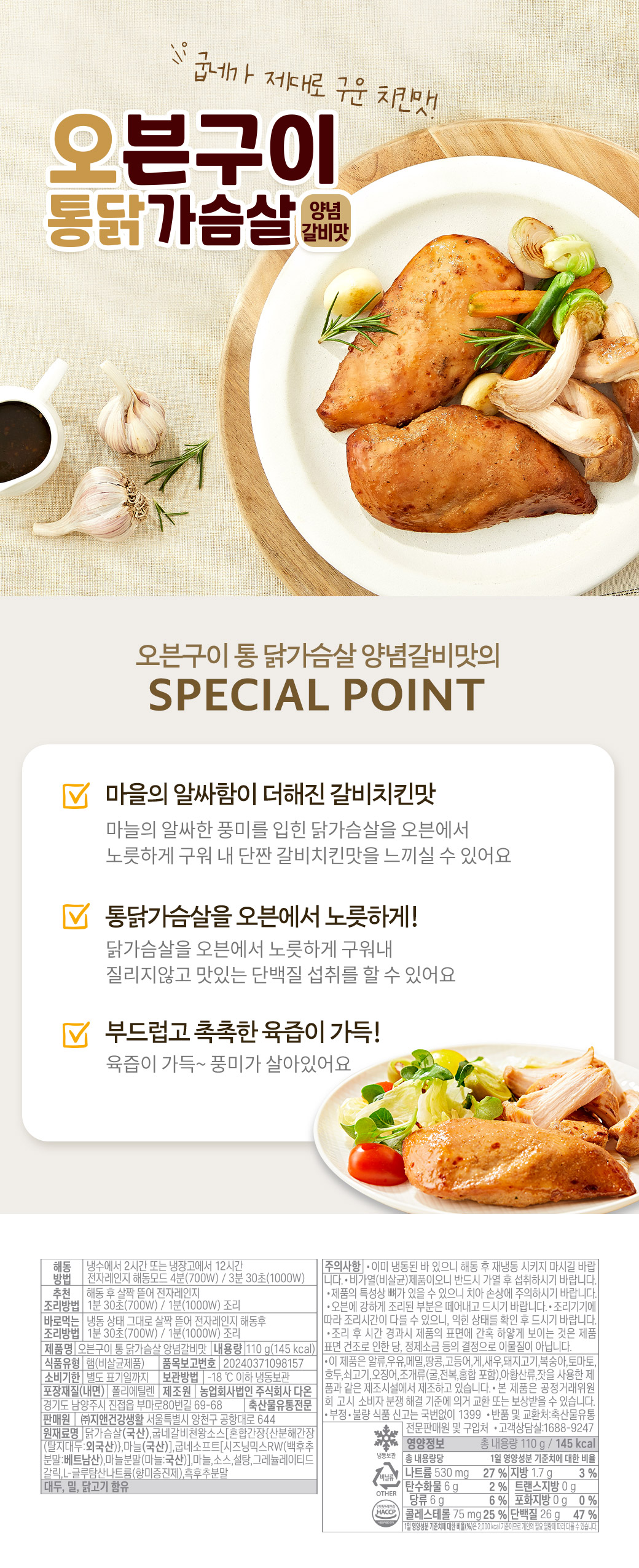 [굽네] 오븐구이 통 닭가슴살 양념갈비맛 110g 10팩