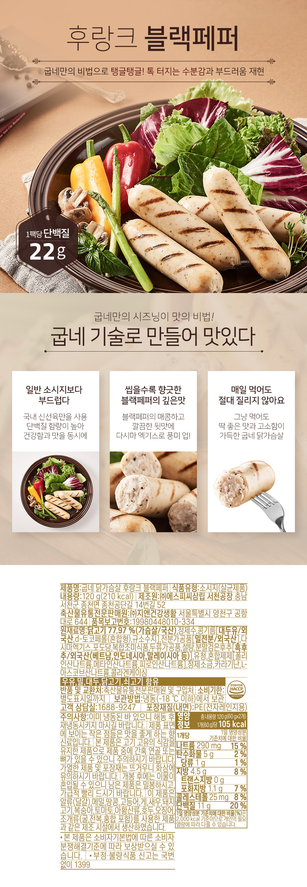 [굽네] 닭가슴살 후랑크 블랙페퍼 120g 10팩