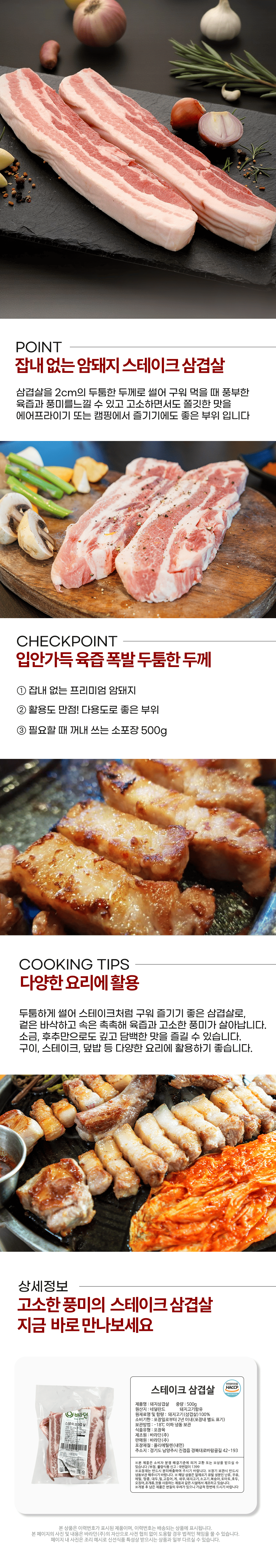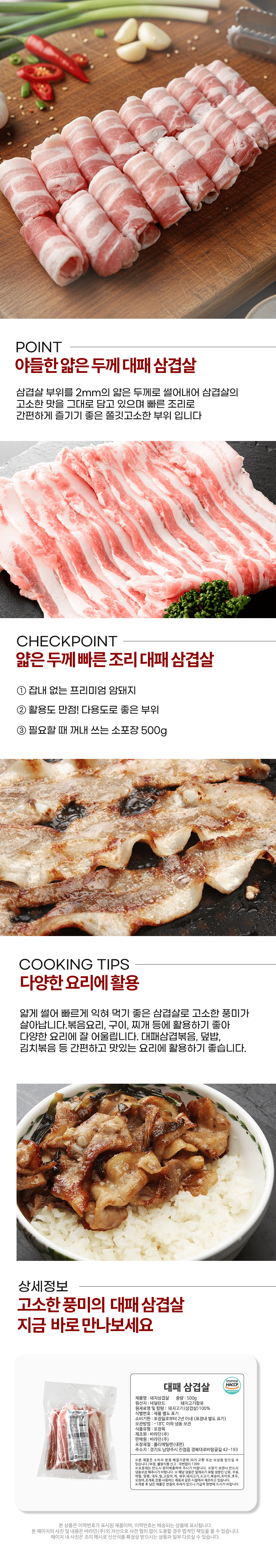 • [육류명인] 한돈 암돼지 대패삼겹살 500g