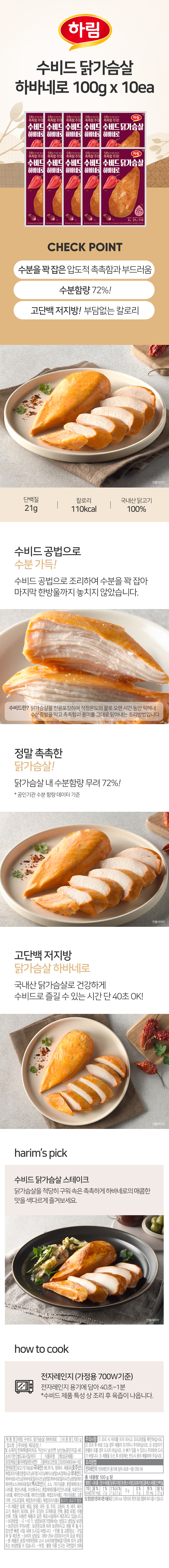 [하림] 수비드 닭가슴살 하바네로 100g 10개 세트
