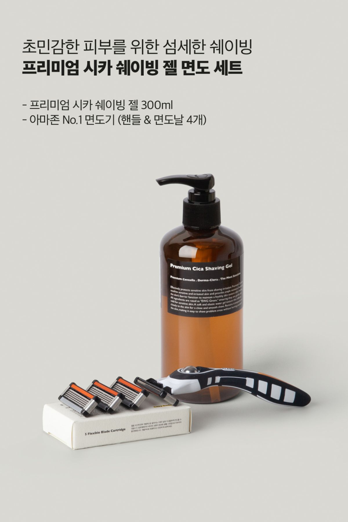 [레이지소사이어티] 프리미엄 면도 세트 (면도핸들 + 5중날 4개입 + 프리미엄 시카 쉐이빙 젤 300ml)