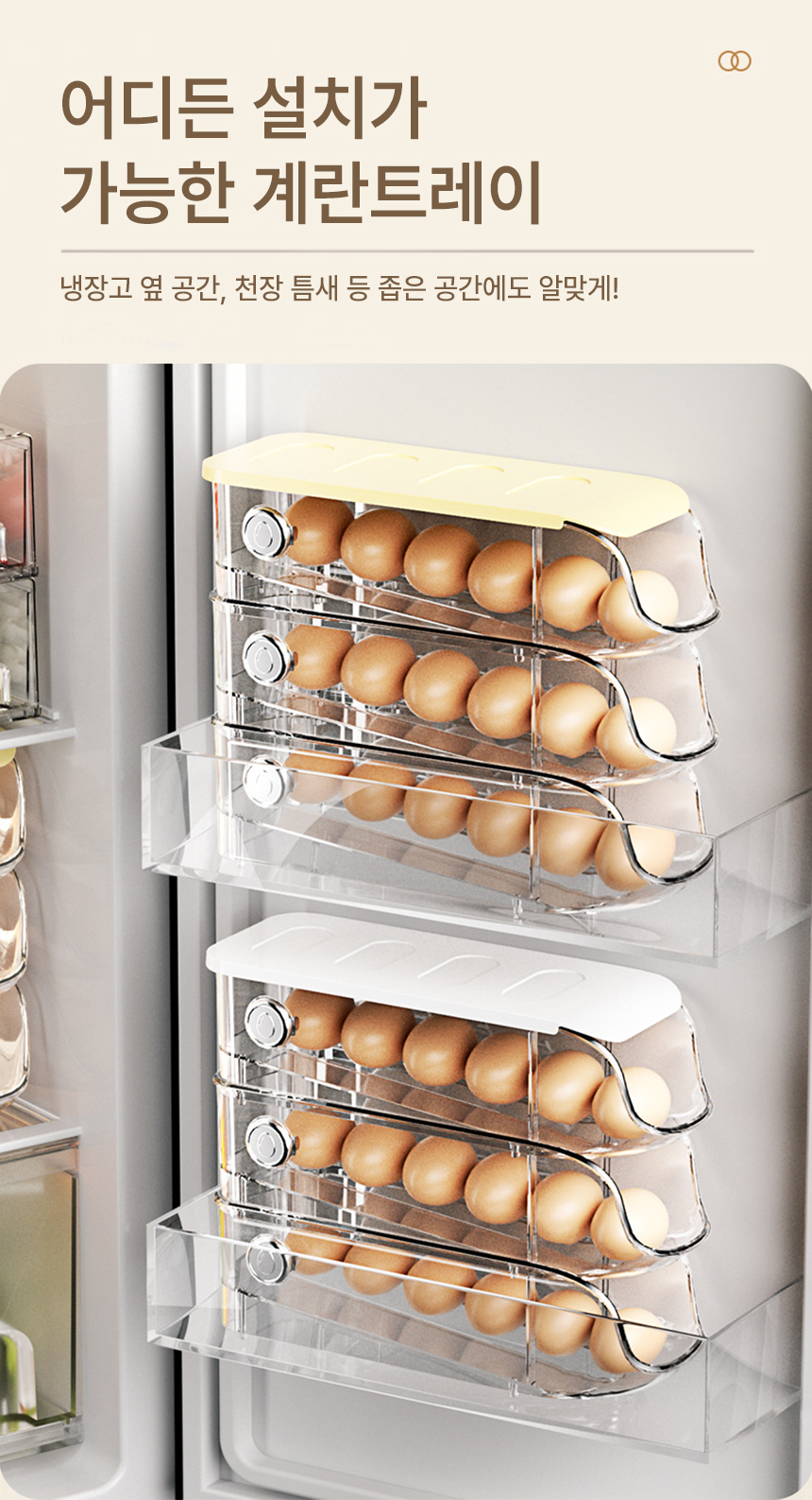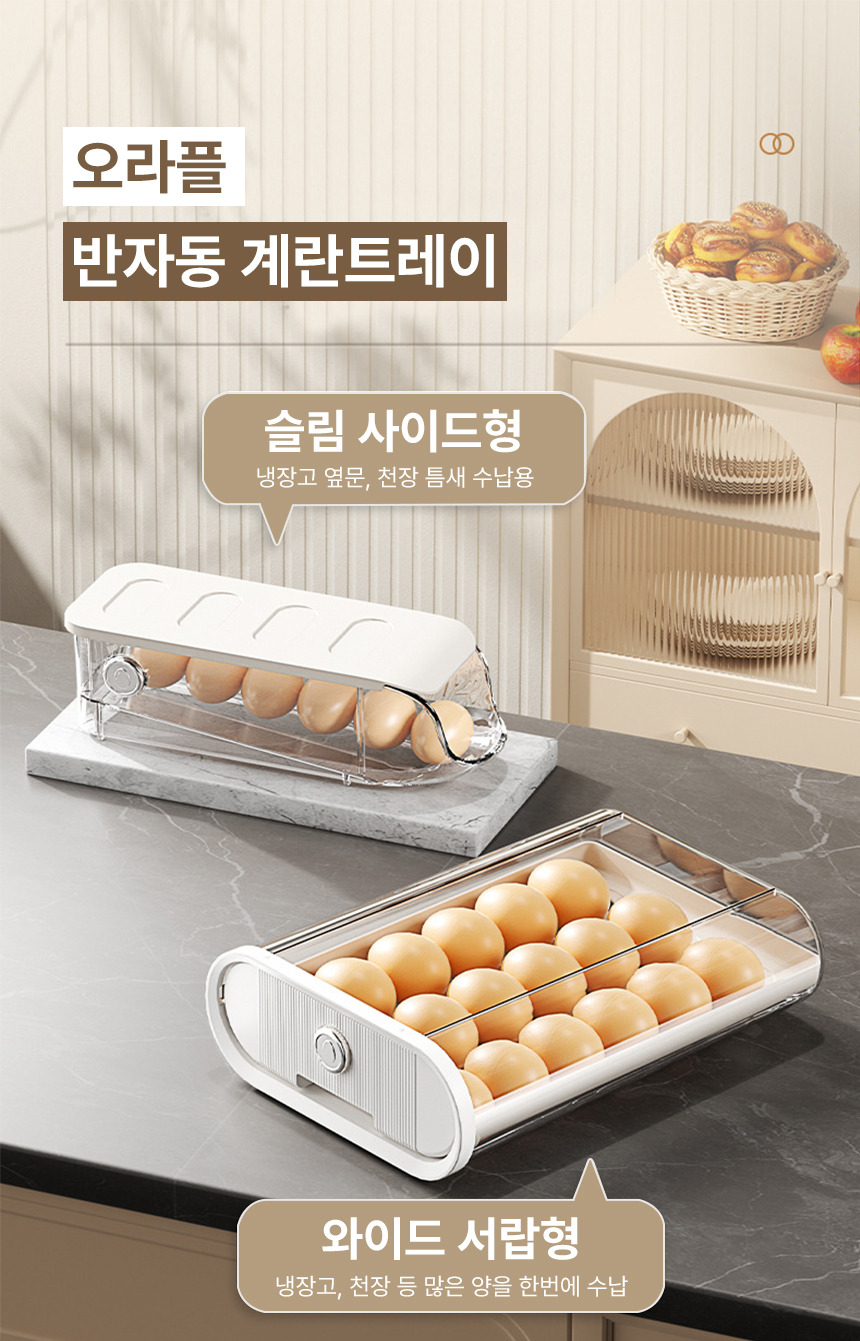 [오라플] 1+1 자동슬라이딩 계란트레이 달걀 에그 냉장고 정리 18구