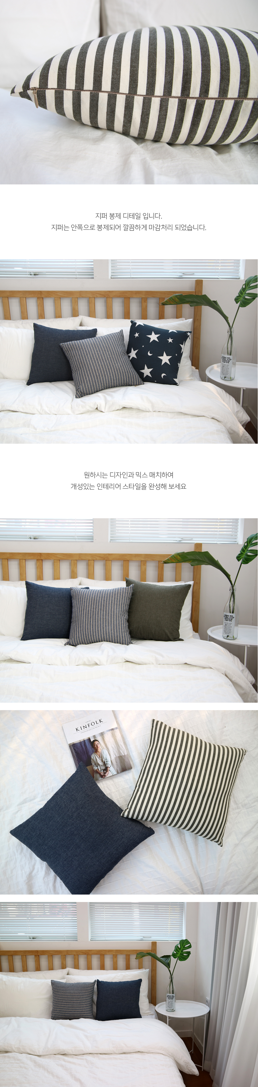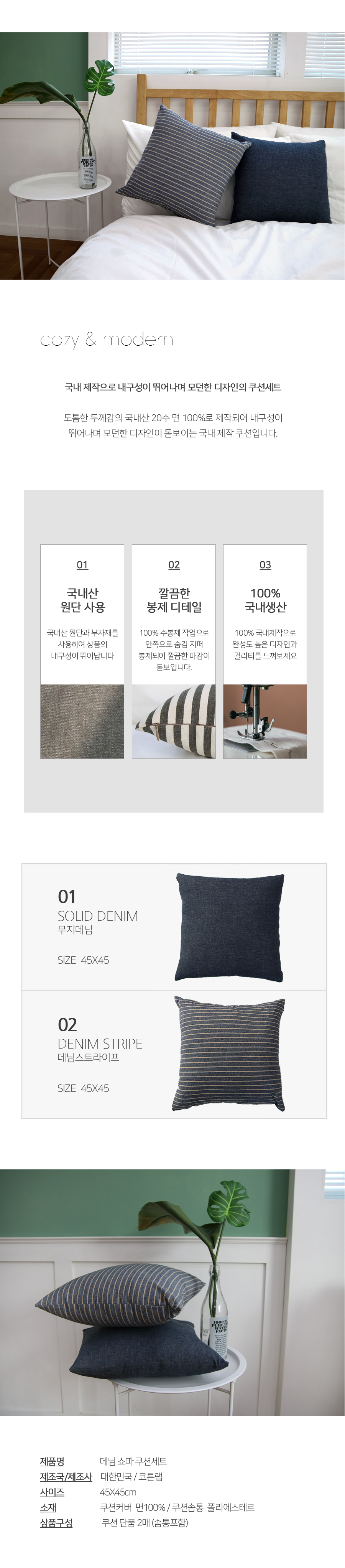 데님 쇼파 쿠션 세트 2매 (45x45 솜포함)