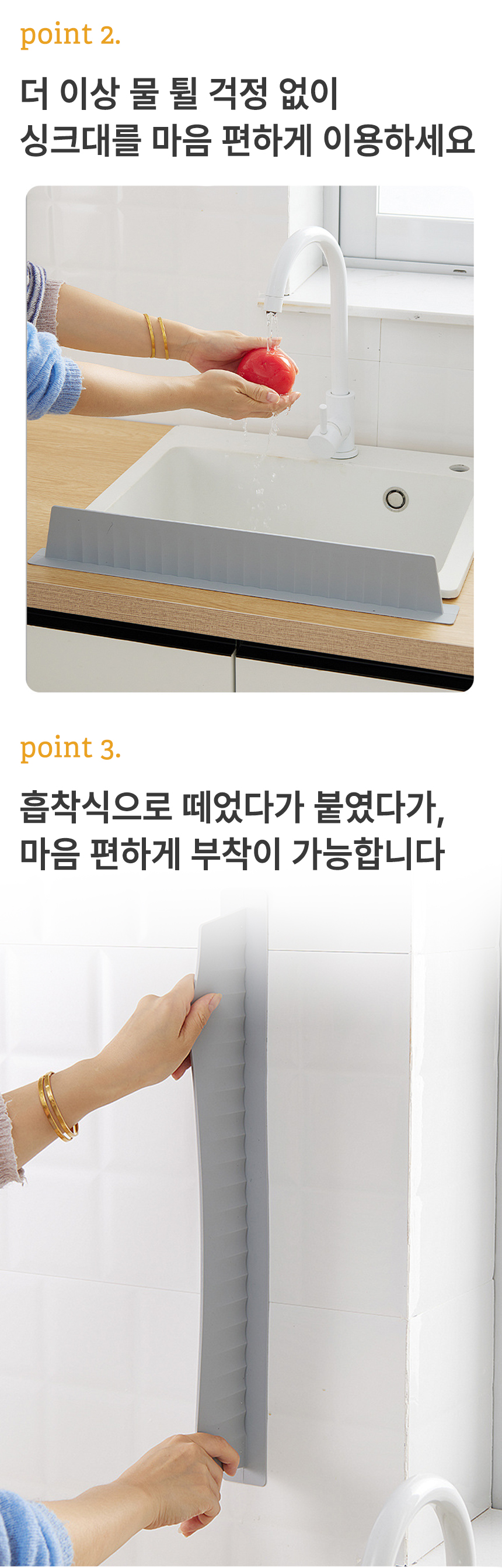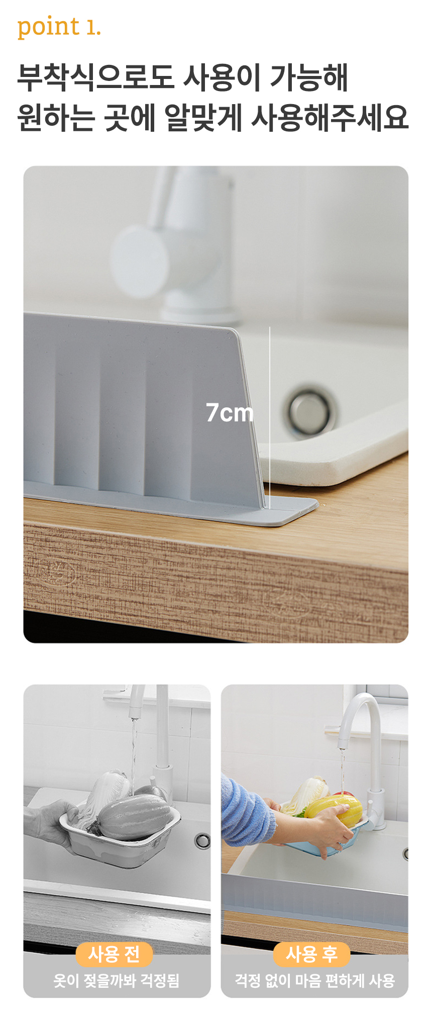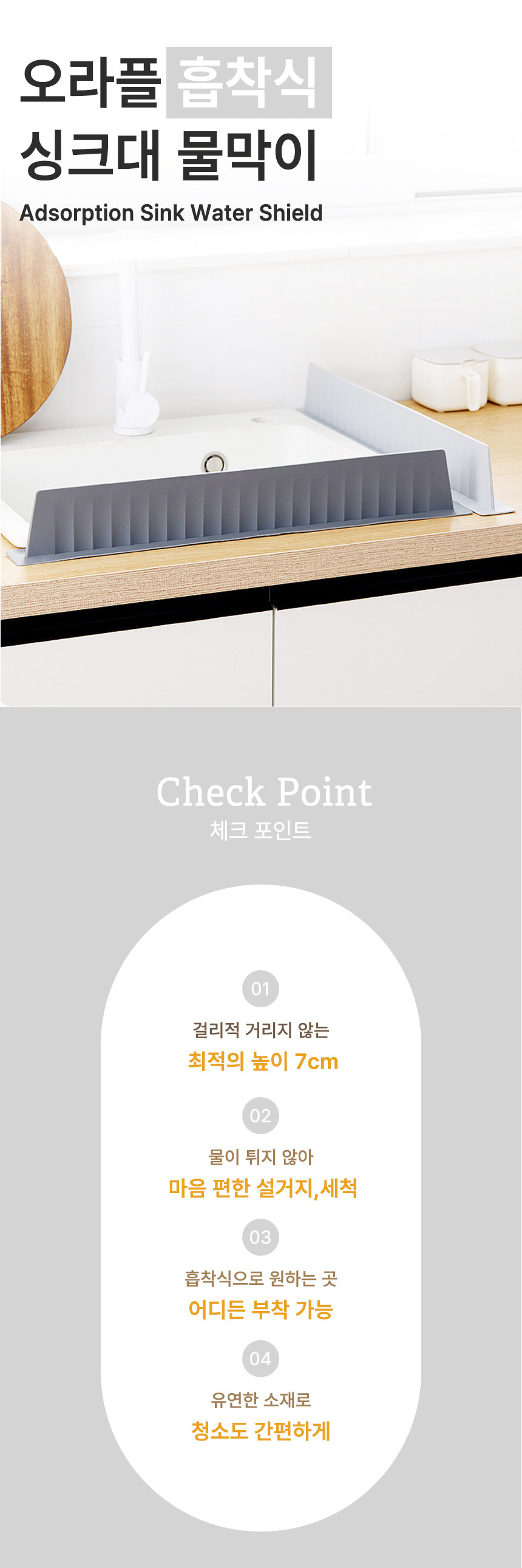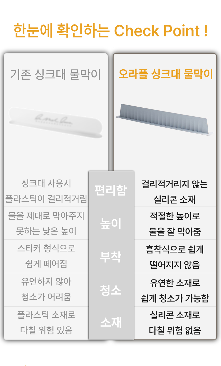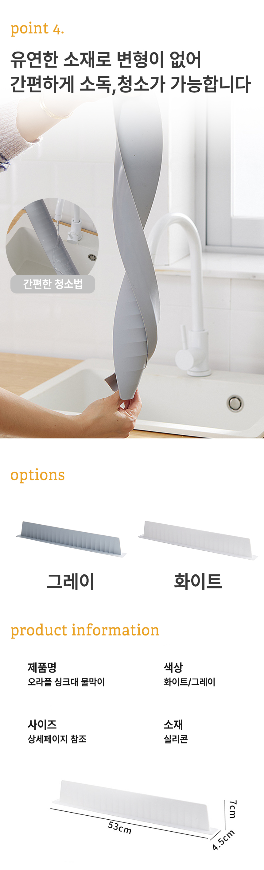 [오라플] 싱크대 실리콘 물막이 53x4.5x7cm (색상/택1)