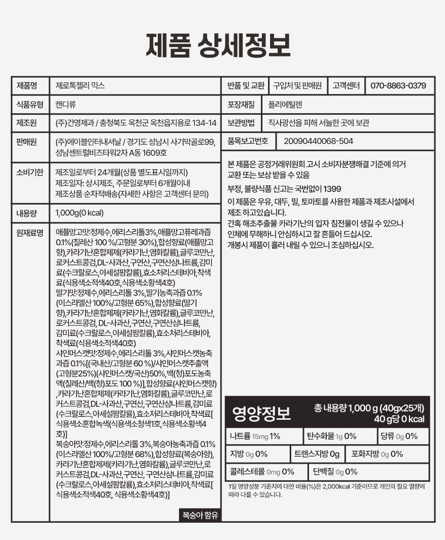 [좋은세상] 제로톡 젤리 믹스 4가지맛 1kg (40gx25개입)