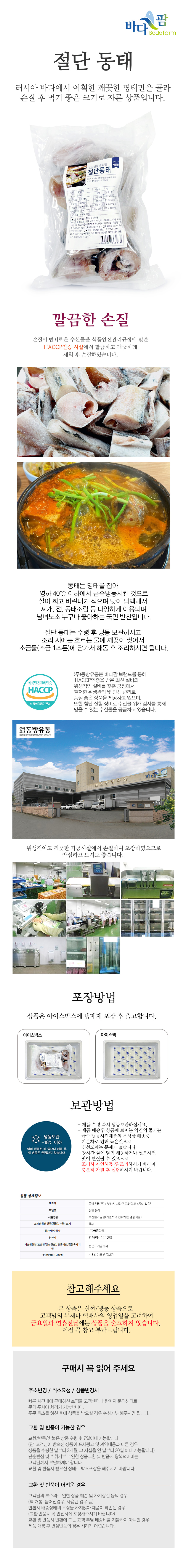 [동방유통] 깔끔하게 손질한 절단동태 1kgx1팩/2팩/3팩/5팩/HACCP인증