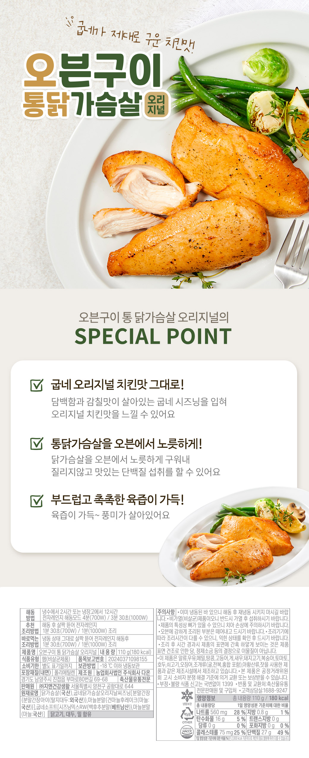 [굽네] 오븐구이 통 닭가슴살 오리지널 110g 15+1팩