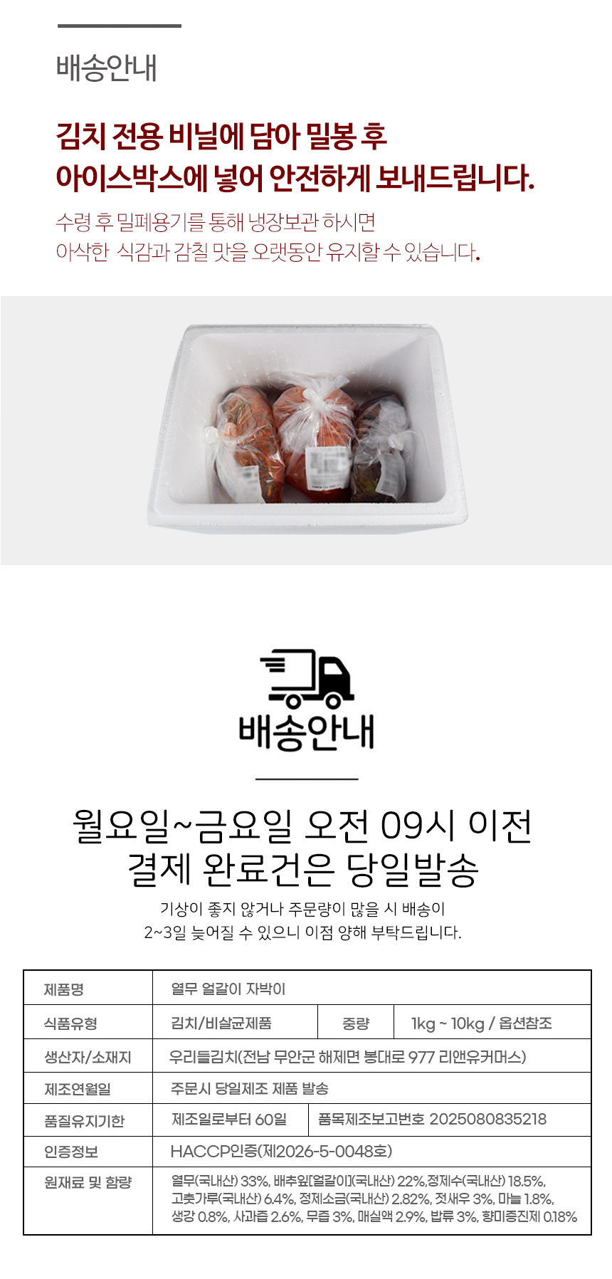 • [하늘김치] 전라도 석박지 / 국내산 재료 / 중량선택