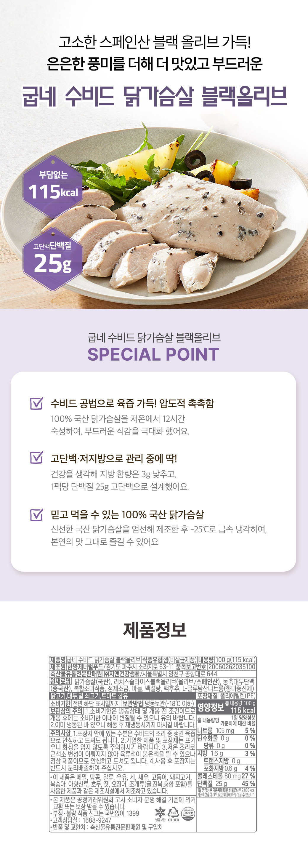 [굽네] 블랙올리브 수비드 닭가슴살 100g 15+1팩