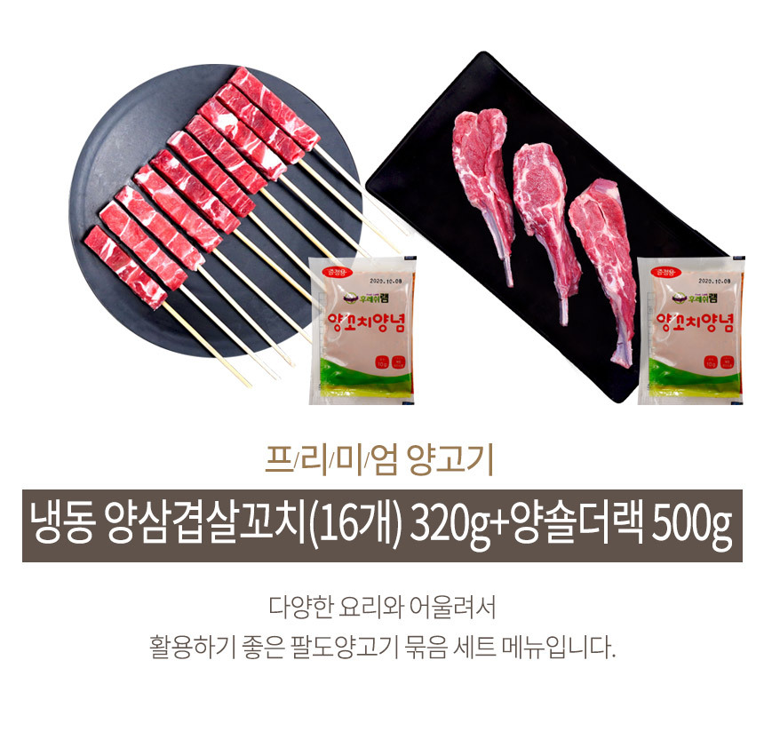 양고기 냉동 양삼겹꼬치 320g(16개) + 양숄더랙 500g +소스20g