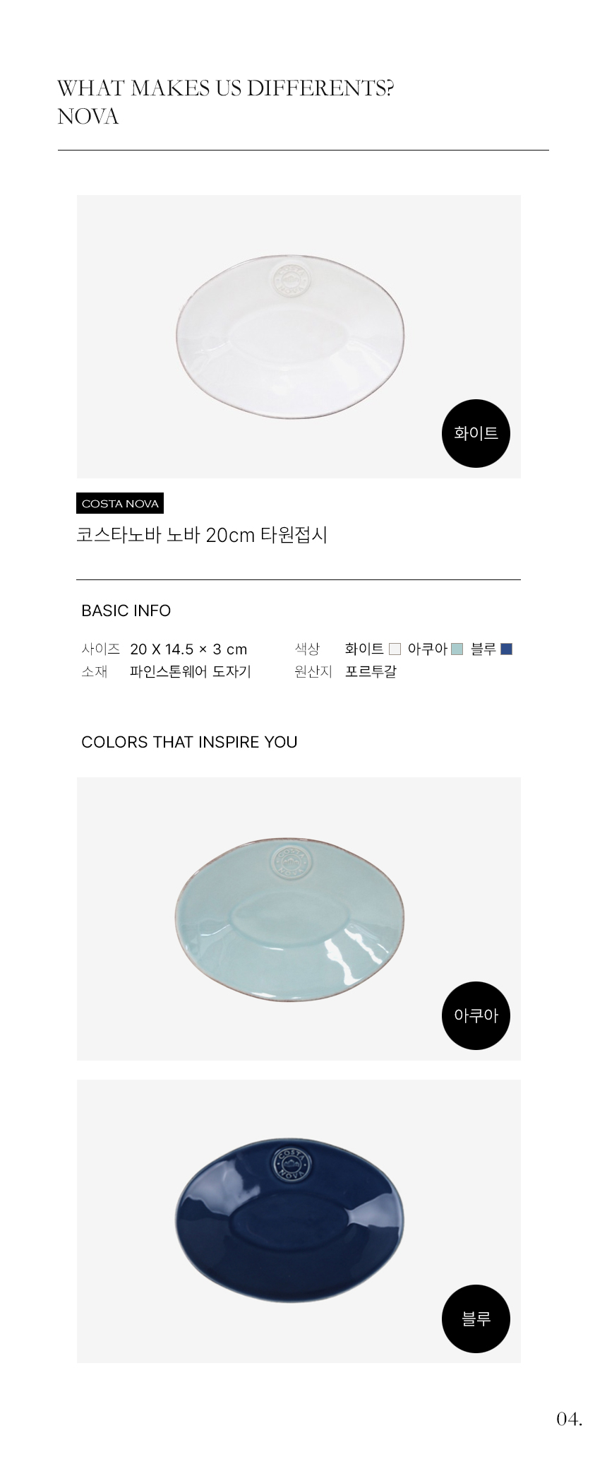 [코스타노바 노바]_타원 생선접시 20cm_아쿠아