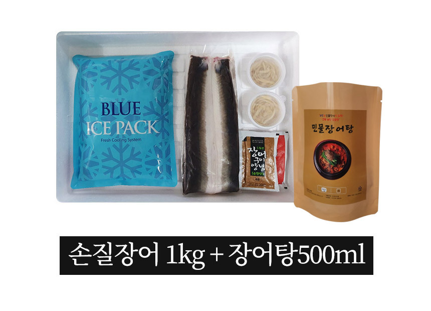 [손질] 국산 민물장어 1kg (3-4인분) 1팩 + 장어탕 500ml 1팩 선물세트 (부직포가방)
