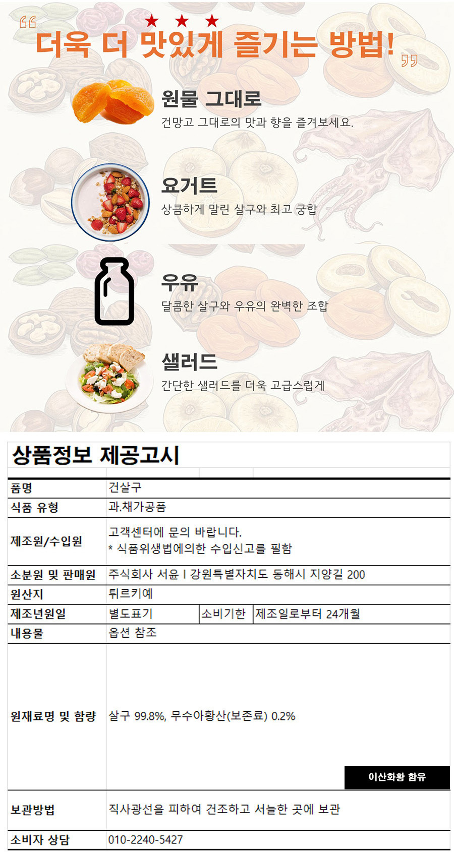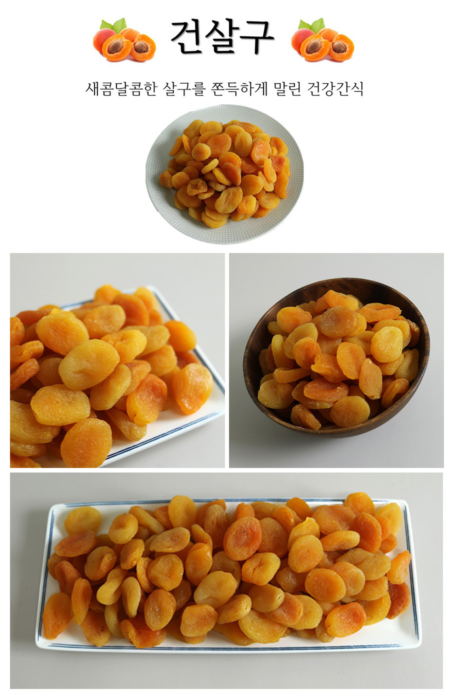 새콤달콤한 살구를 쫀득하게 말린 무설탕 씨 없는 건살구 500g