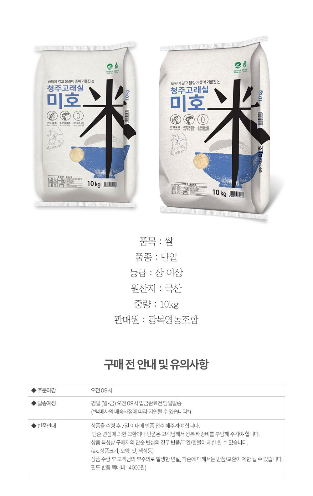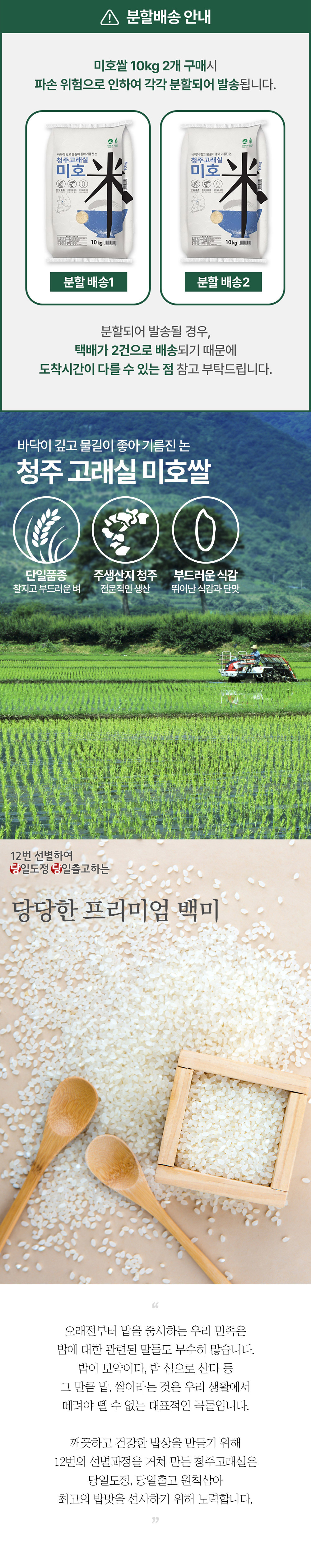 청주 고래실 프리미엄 백미 미호 쌀 10kg (2포대) 총 20kg