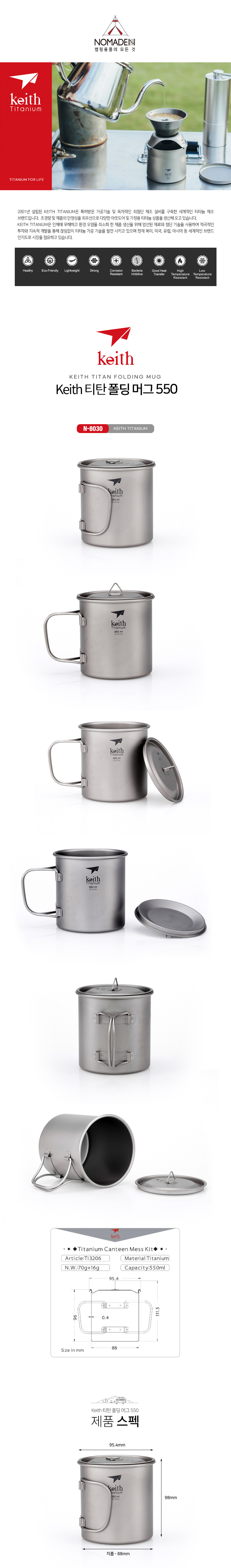노마드 Keith 티탄 폴딩머그550 휴대용 캠핑 용품 N-8030