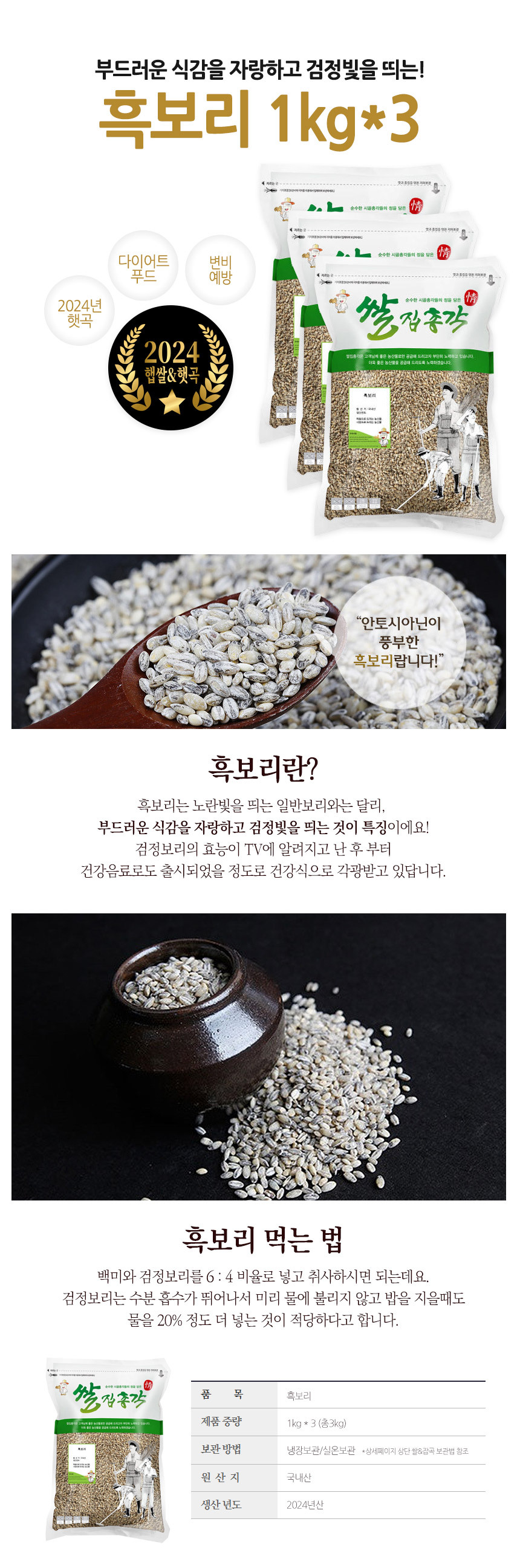 [2024년햇곡] 국내산 흑보리 1kg x 3 (총3kg)