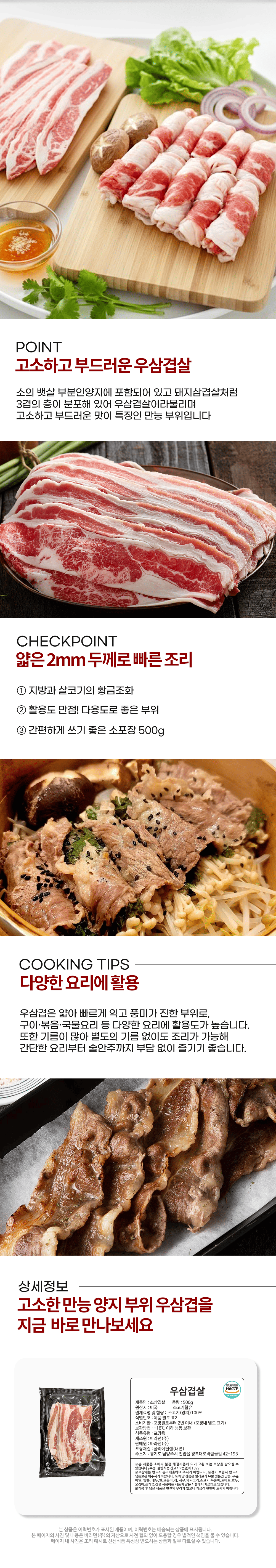 [바라던]미국산 냉동 우삼겹살 500g 1팩/2팩