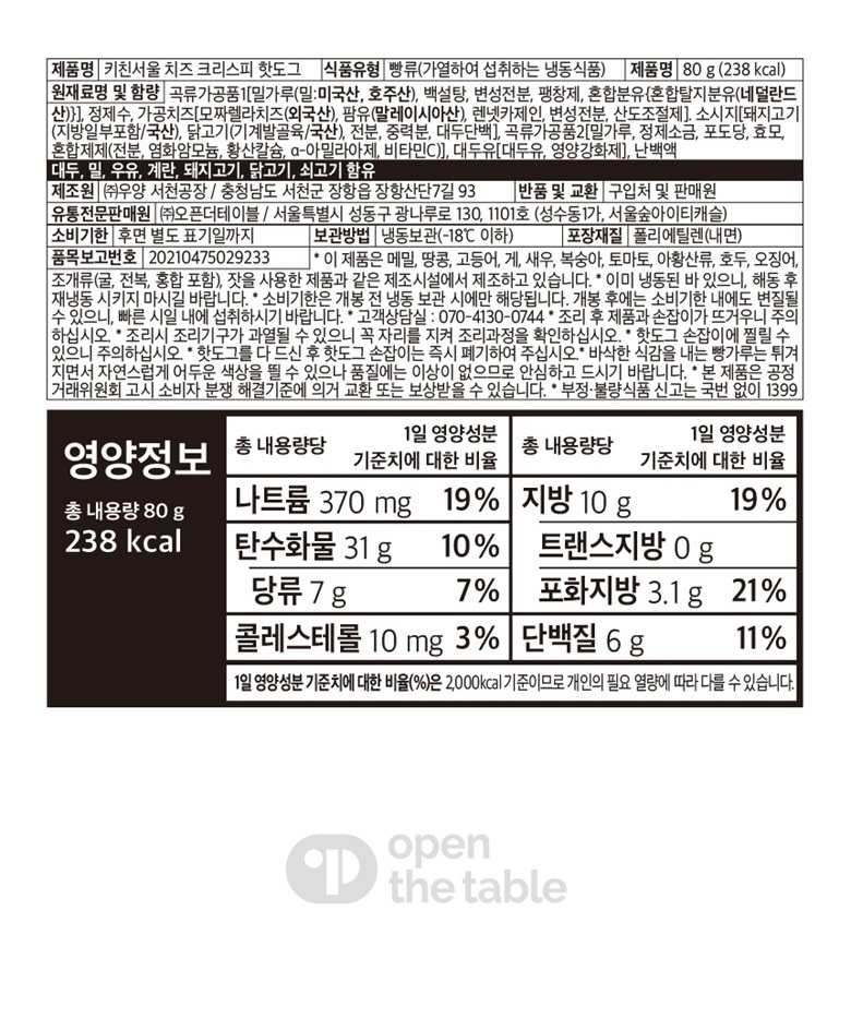 [키친서울] 치즈 크리스피 핫도그 80g x 10 (800g)