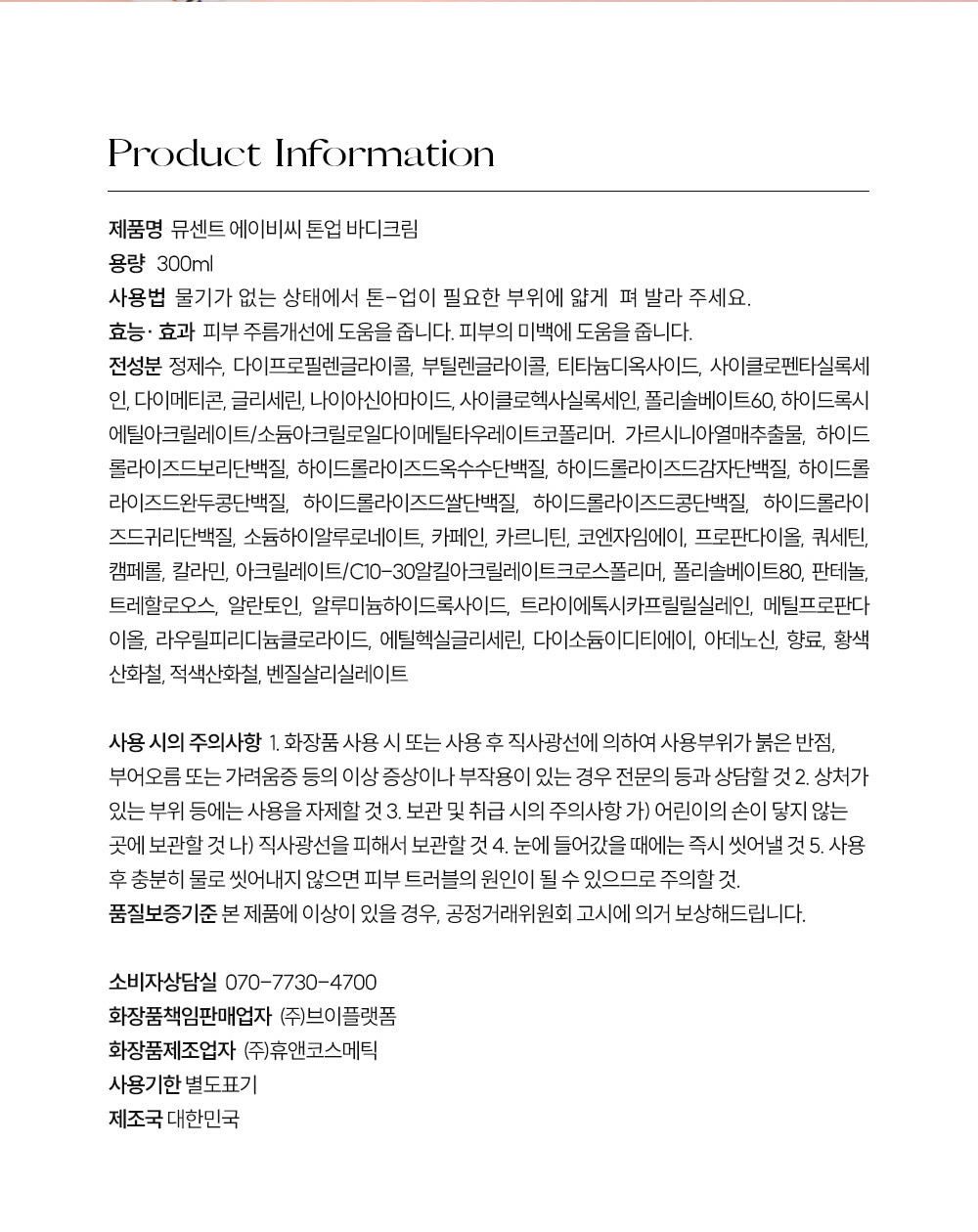 [뮤센트] 에이비씨 톤업 바디 크림 300ml
