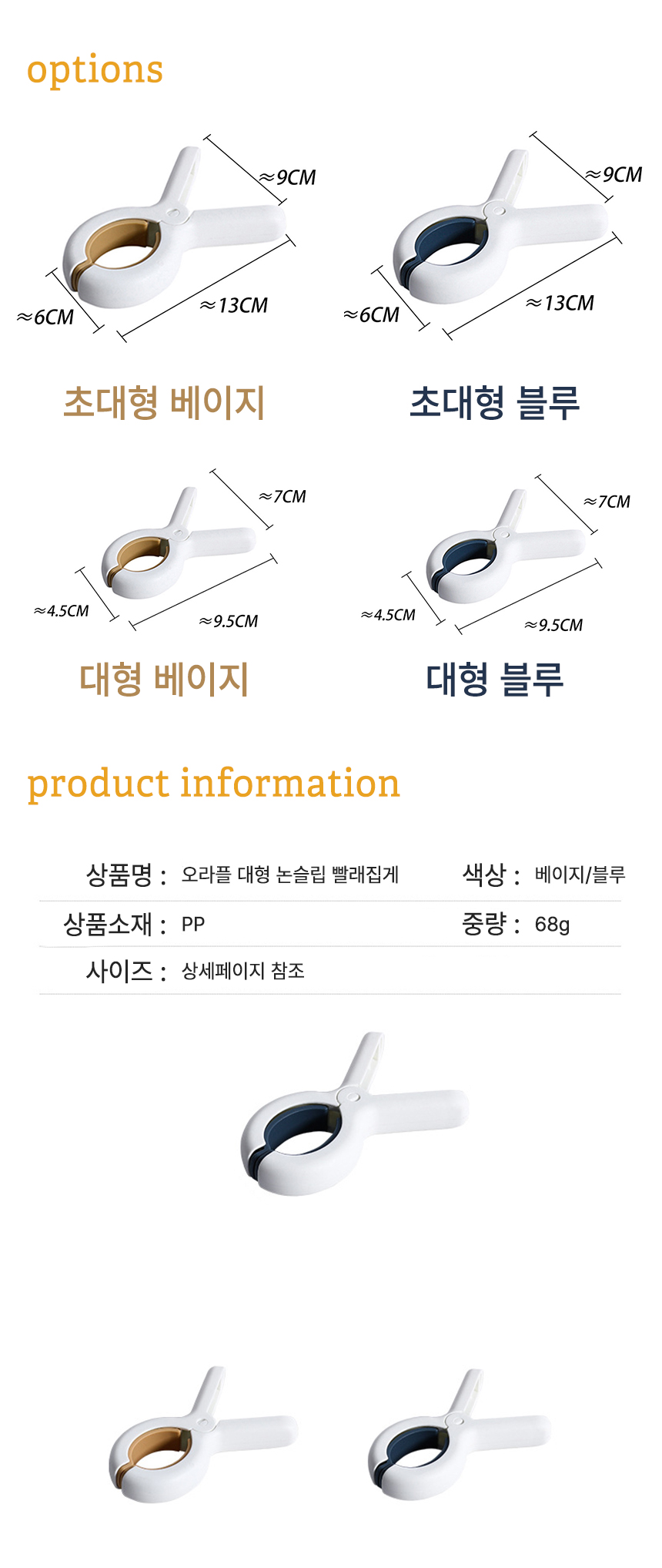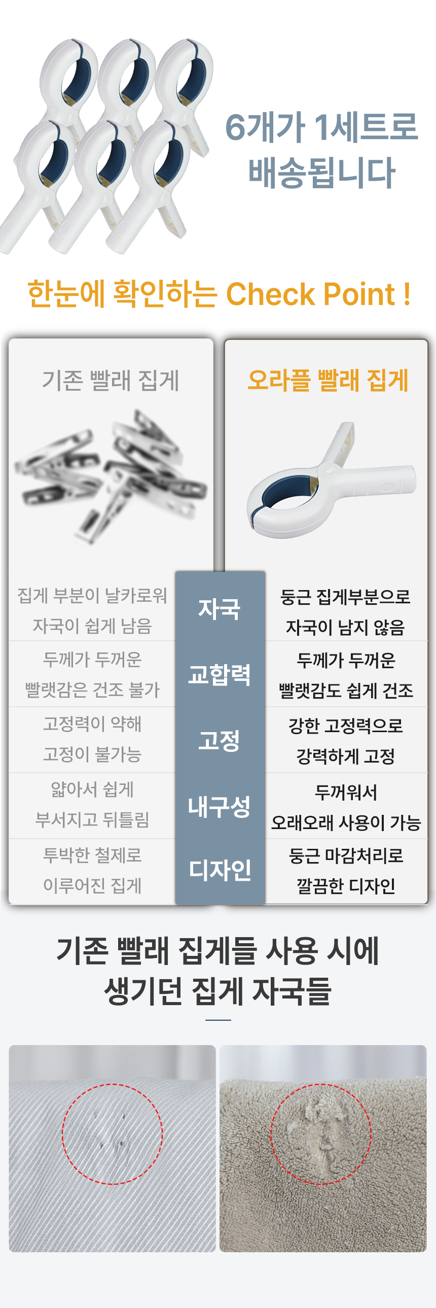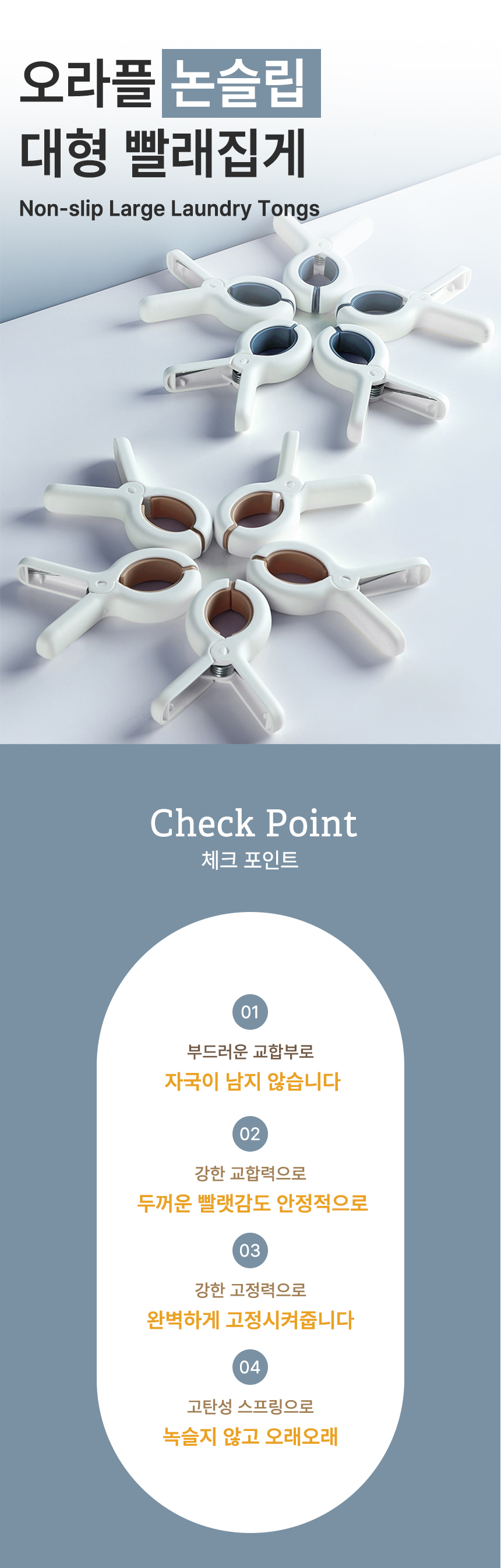 [오라플] 논슬립 자국없는 빨래집게 6개입(초대형)