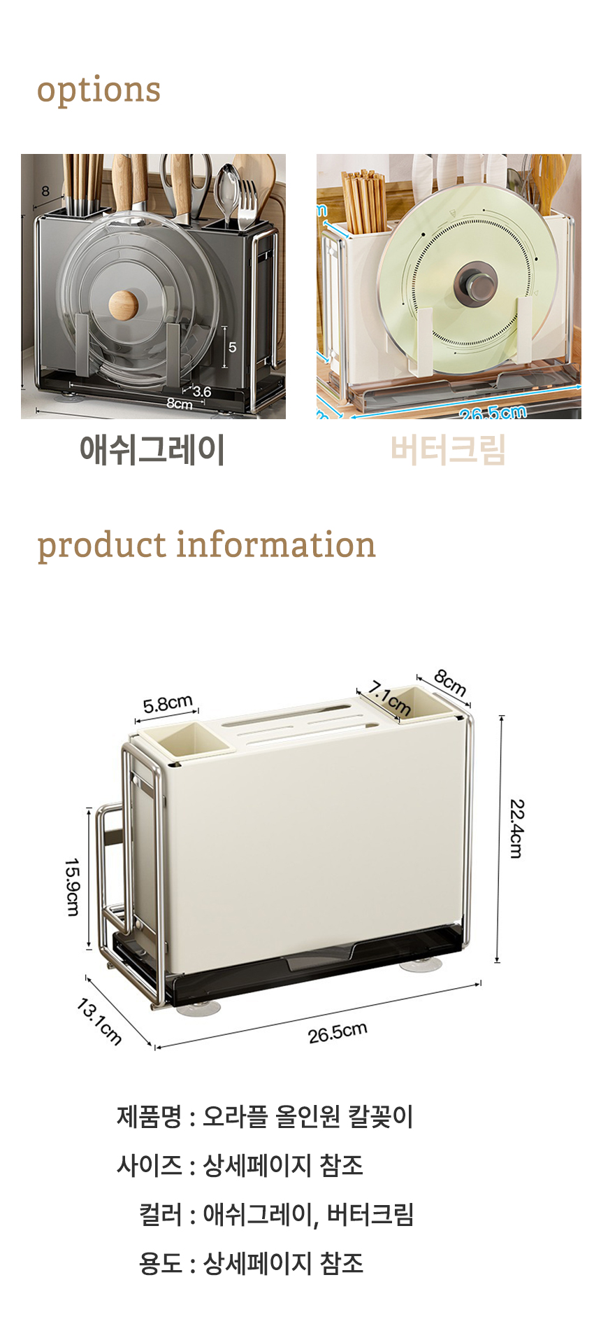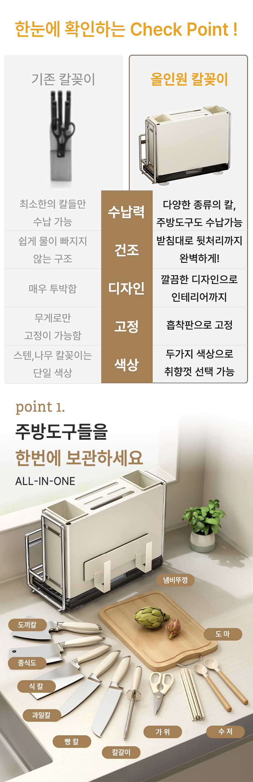 [오라플] 주방 칼꽂이 칼걸이 블럭 거치대 조리도구 도마정리 (색상/택1)