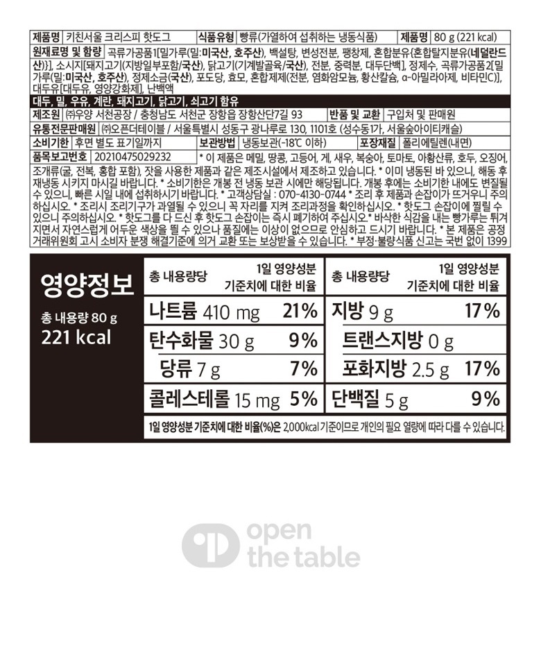 [키친서울] 크리스피 핫도그 80g x 10 (800g)