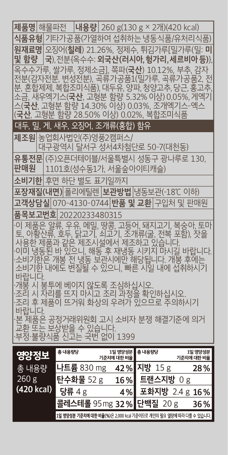 [박가네빈대떡] 해물 파전 260g x 2 (총 4장)