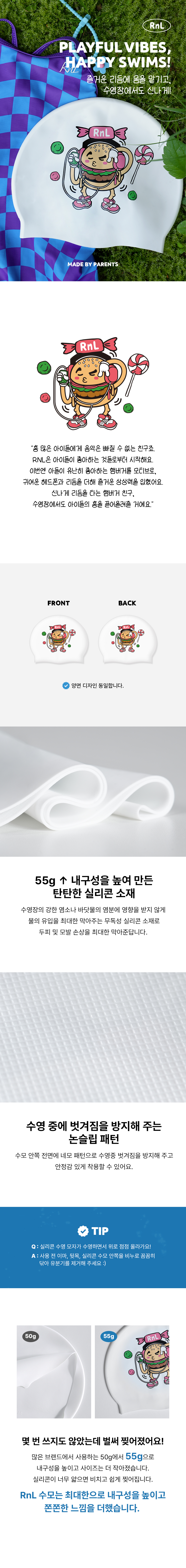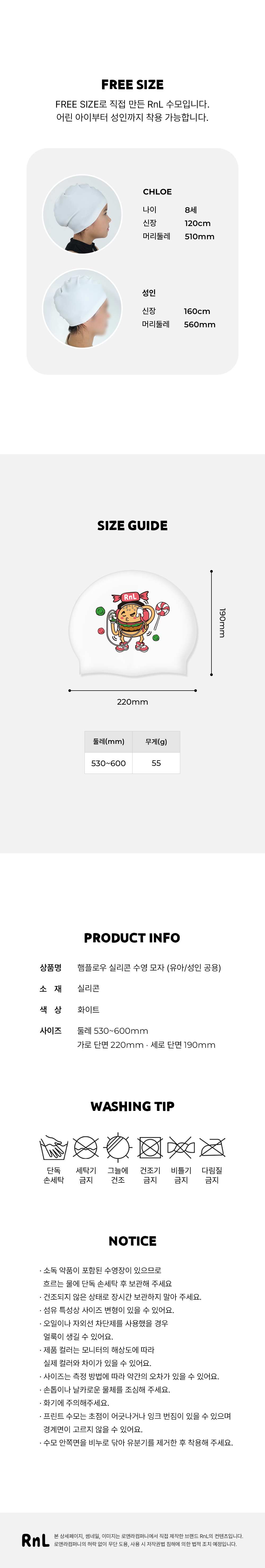 알앤엘 햄플로우 실리콘 수영모자 (유아/성인 공용) 1개 화이트