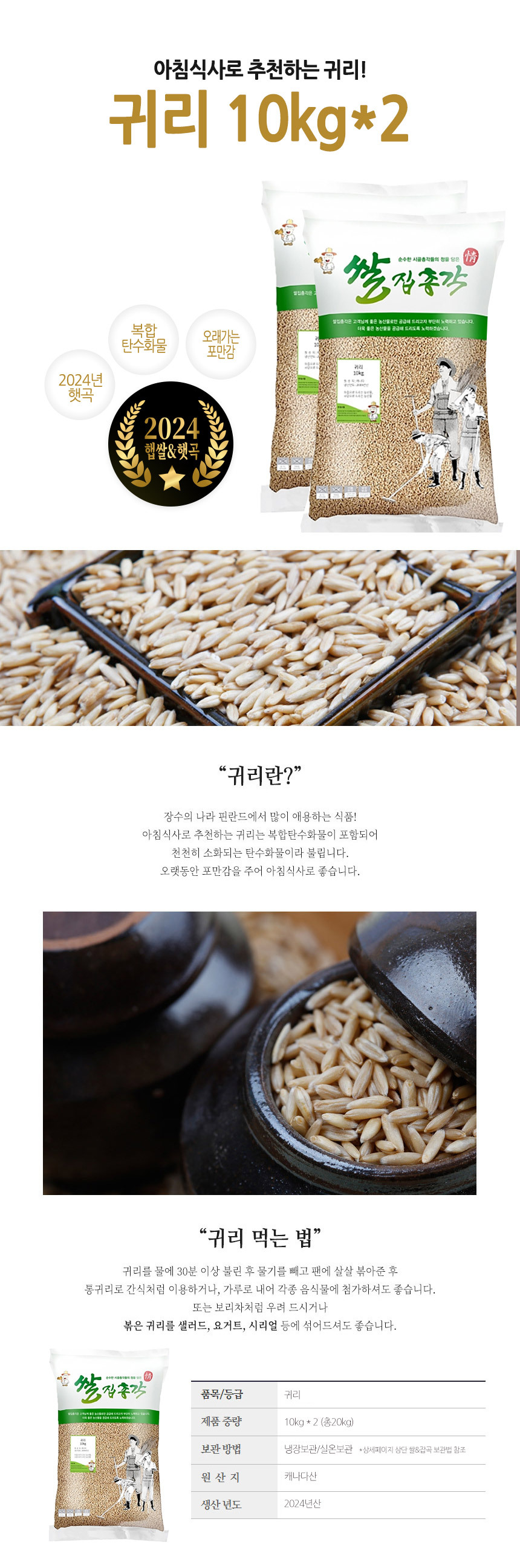 [2024년햇곡] 캐나다산 귀리 10kg x 2 (총20kg)