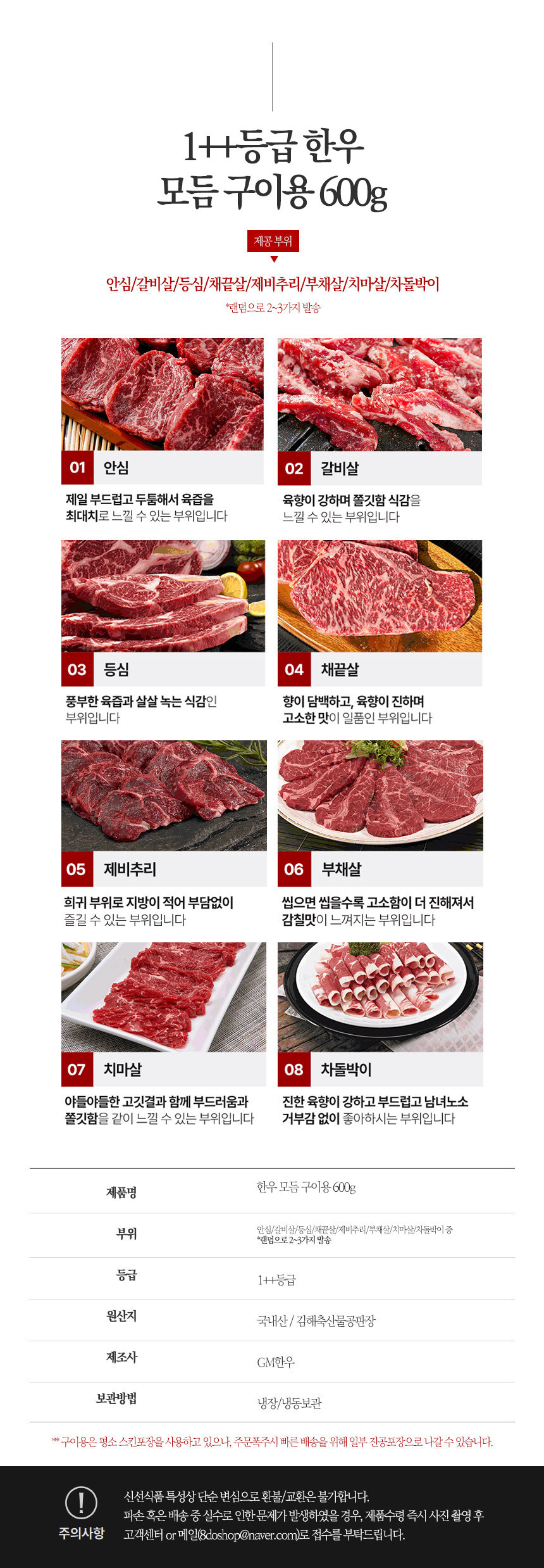 [숙성 한우] 소고기 1++등급 모듬구이용 600g
