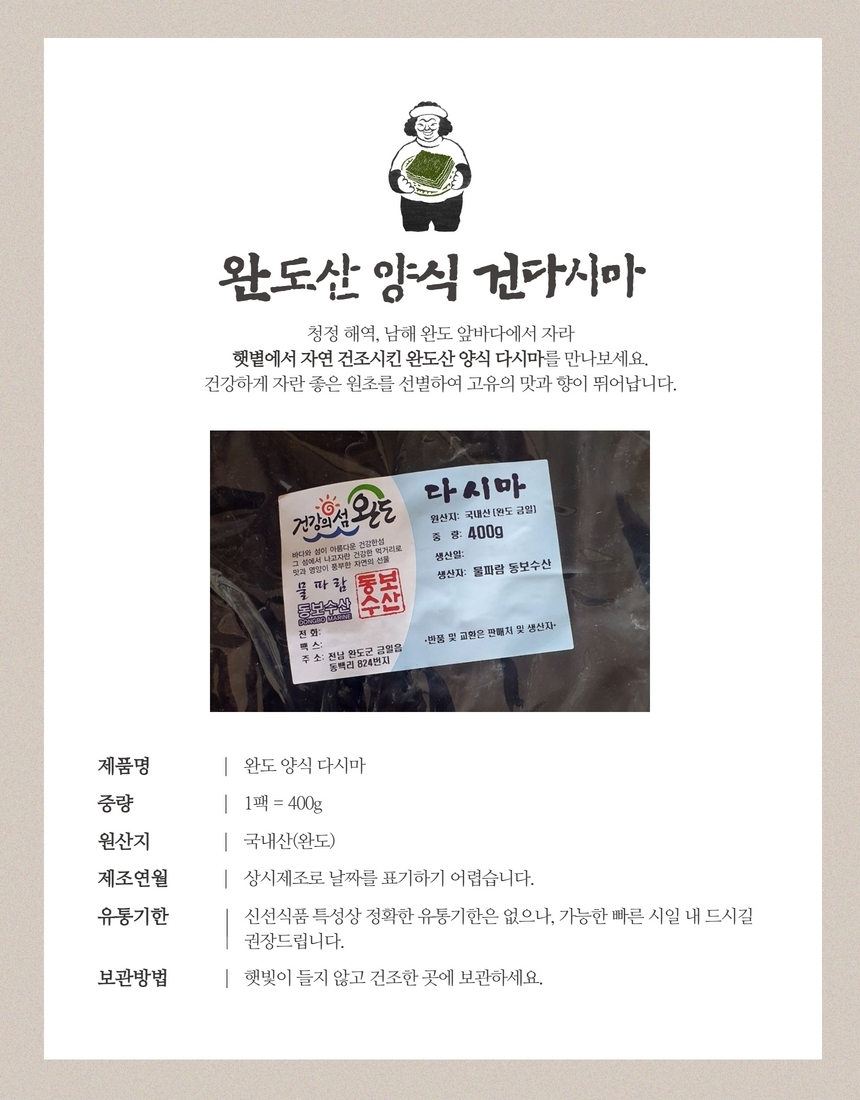 [BADA] 깨끗한 완도 미역 350g 3팩+다시마 400g 2팩