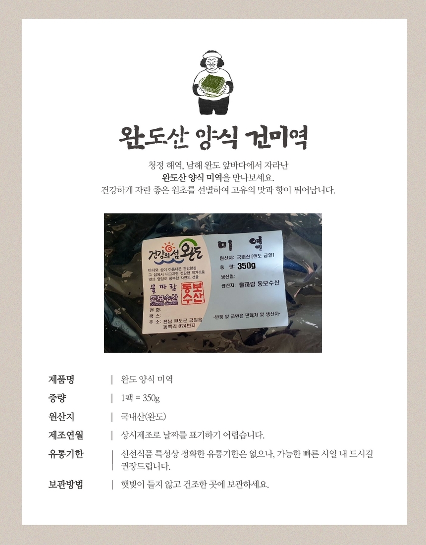 농수산물의 원산지 표시에 관한 법률에 따른 원산지 국내산(완도)