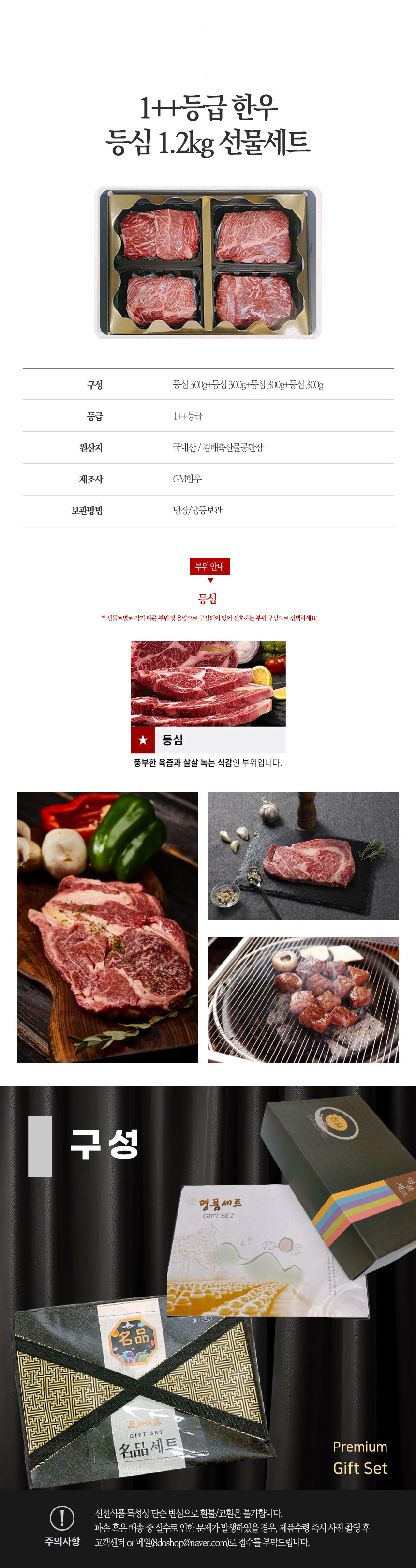 [1++등급] 한우 등심 1.2kg 선물세트 (고급포장지 포함)