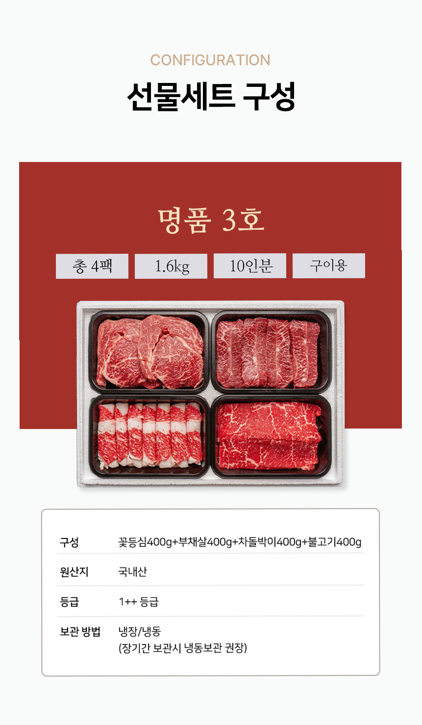 [진우담] 1++한우 모듬 명품 3호 1.6kg(꽃등심400g+부채살400g+차돌박이400g+불고기400g)