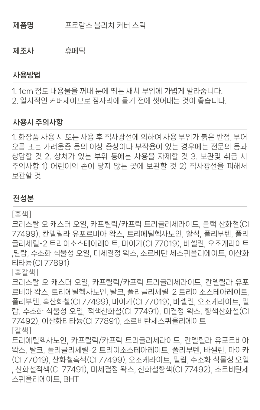 프로랑스 블리치 커버 스틱 새치 브리치 흰머리커버 흑갈색