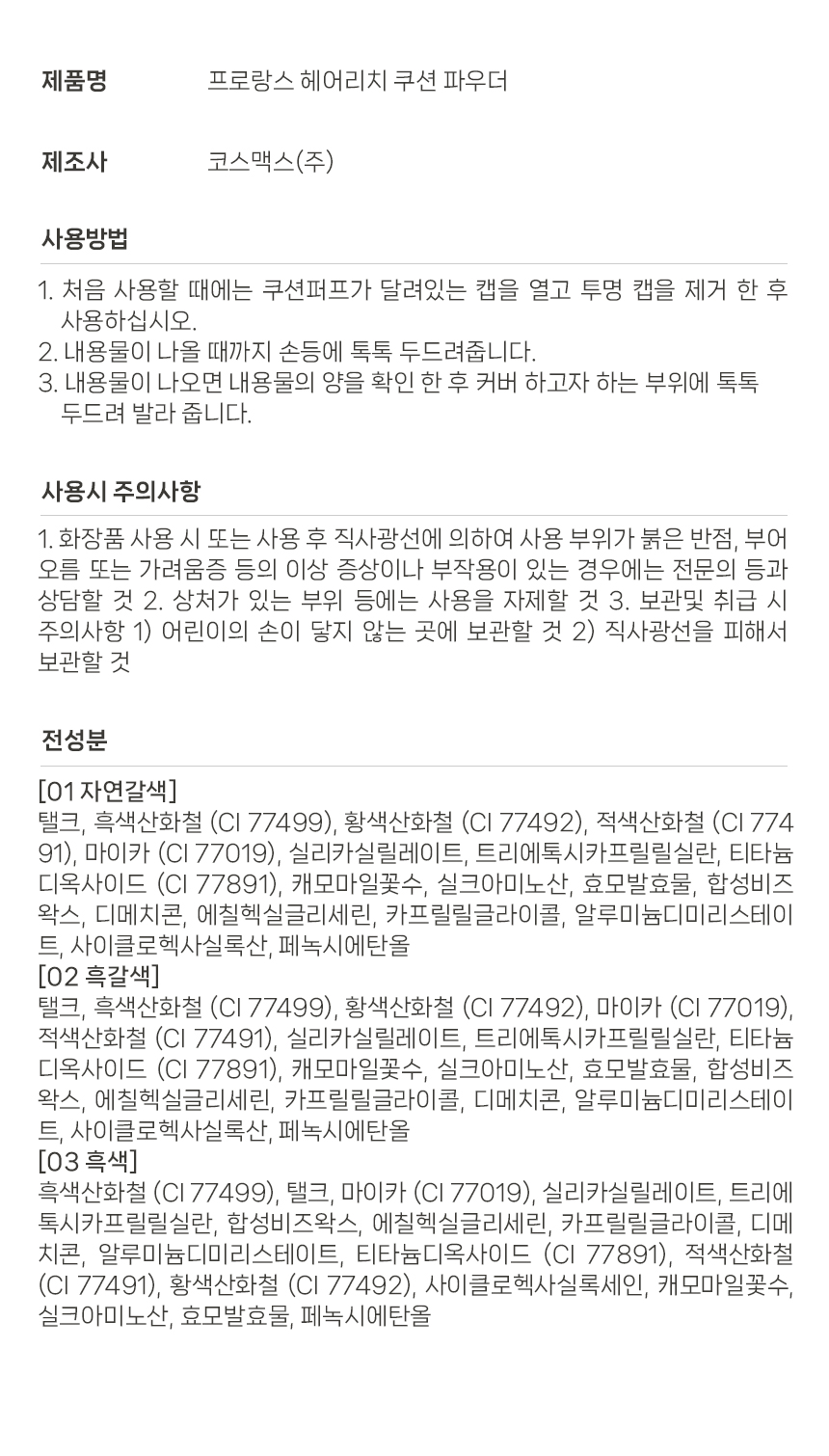 프로랑스 헤어리치 쿠션 파우더 /빈모커버 흑채