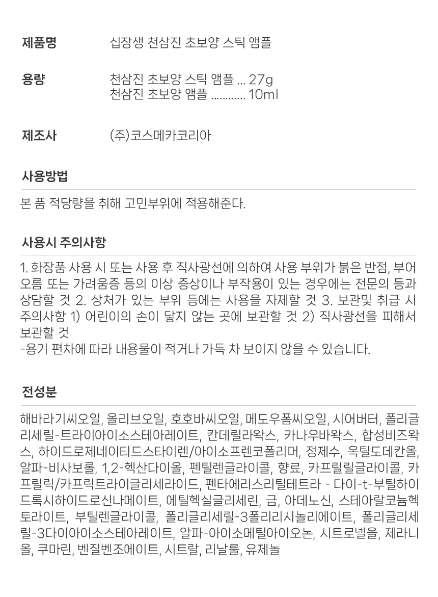 십장생 천삼진 초보양 스틱 앰플 이중기능성 한방 미백 주름케어 +비타민크림A