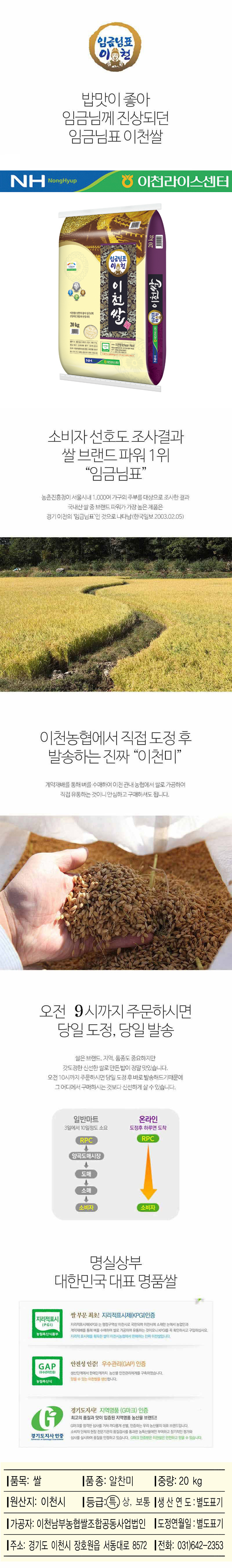 [25년 햅쌀_특등급] 당일도정 임금님표 이천쌀 20kg [알찬미]