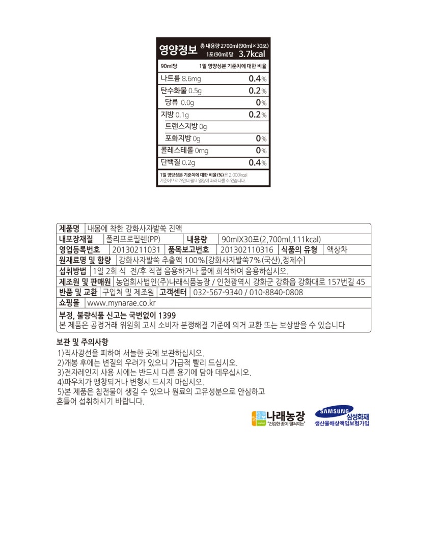 나래식품농장 내몸에 착한 강화사자발쑥 진액 30포 x 2박스