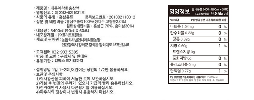 나래식품농장 내몸에 착한 홍삼 홍삼액 60포 x 1박스