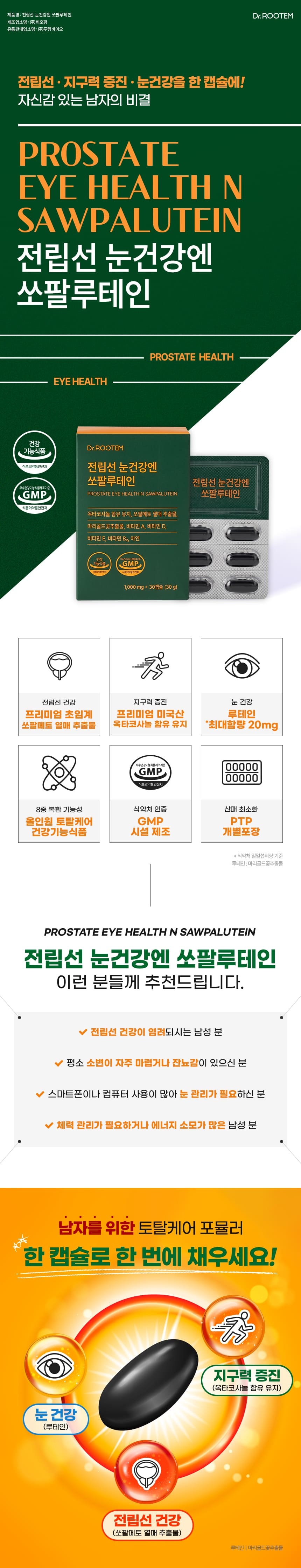 닥터루템 전립선건강 눈건강 쏘팔메토 루테인 옥타코사놀 30캡슐, 2박스
