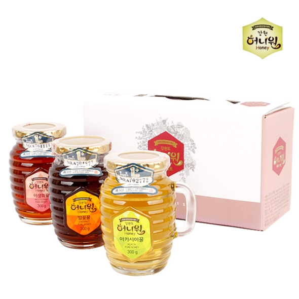 [명절특선][허니원] 벌꿀3종 핸들컵 선물세트1호(아카시아꿀+야생화꿀+밤꽃꿀 각300g)