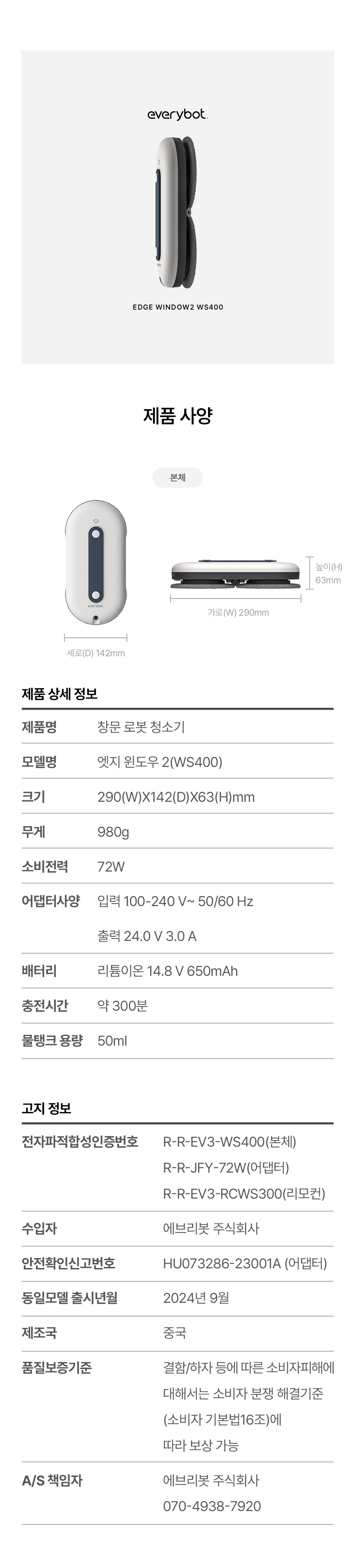 [주말특가]에브리봇 엣지 윈도우2 창문 로봇 청소기 WS400 25년 최신형 신제품