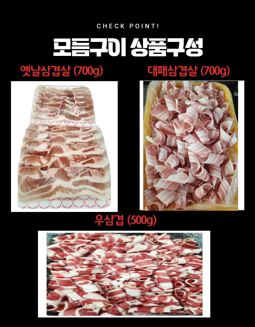 옛날삼겹살700g, 대패삼겹살700g, 우삼겹500g(±10g차이날수 있음)