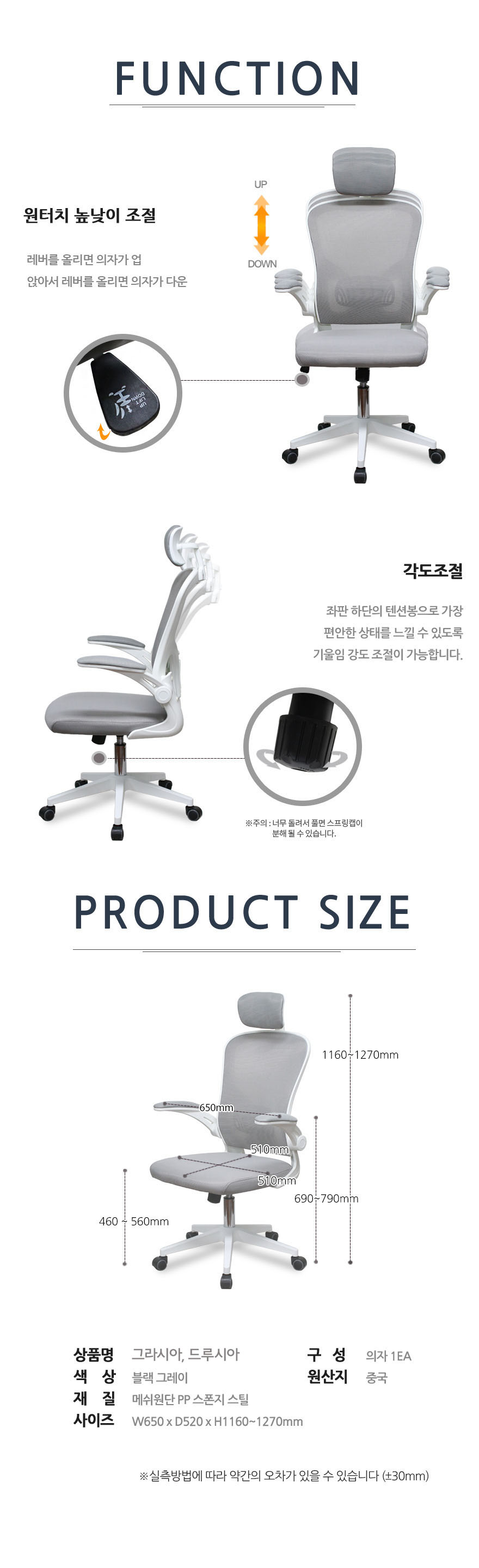 그라시아 /드루시아 컴퓨터책상의자 사무용 공부방 (옵션선택)
