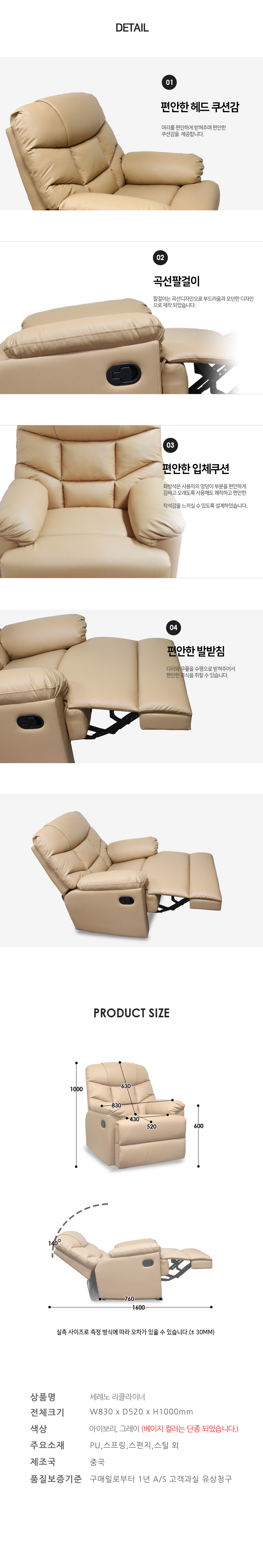 세레노 리클라이너 1인 소파 각도조절 발받침 수동(컬러선택)